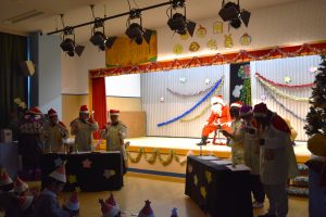 いつの間にか本格的な冬を迎え、朝は澄み切った青空の中に、真っ白な富士山が美しく見えるようになりました。幼稚園だけでなく街中の色々な場所でイルミネーションはきらめき、クリスマスやお正月が近づいている年末の楽し気な雰囲気に、子ども達はウキウキの様子です☻