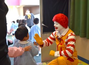 今日は年長組の交通安全のおべんきょうに、なんと特別ゲストが…✨マクドナルドさんよりドナルドが交通ルールを教えに来てくれました🍔