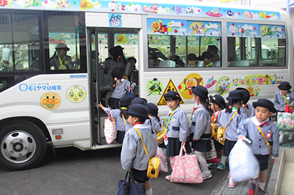 園のアンパンマンバスに乗って遠足にも出かけます。