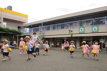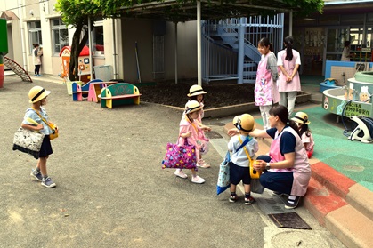 | 通園について | 1、 徒歩通園 幼い時から歩くということを身につけることが大切です。交通ルールやマナーを知り、身体を丈夫にします。 2、 バス通園 バスの運行は大和市南部を中心に4台で運行しています。運行時間は約30分前後となりますので安心してご利用できます。 置き去り防止安全対策について |