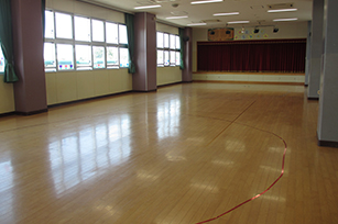 ホール兼用の遊技場で雨天の場合ものびのびとした身体活動をしています。