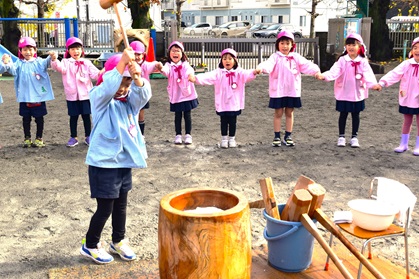 季節に合わせた楽しい保育をし、園行事にもいくつか参加します。(芋ほり・クリスマス会・餅つき等)