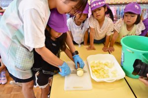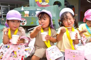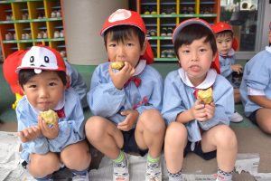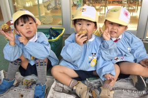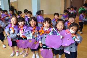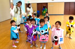 10月31日にはハロウィン誕生会が行われました。可愛らしい👻オバケ👻を中心とした仮装をしてお誕生日会に参加後、お菓子をもらうために園内に散らばった先生たちを探す冒険にでかけました!先生たちも魔女やかぼちゃ、ヤンチャなニワトリ!?🐔の恰好をして子ども達をお出迎え☻子ども達は驚いたり大笑いしながら「トリックオアトリート!!」と嬉しそうにお菓子を受け取っていました。