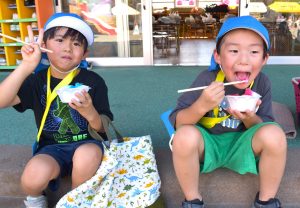 作品展関連では、今年も園全体で子ども達の自由な発想に重きを置いた「アートデー」が行われ、とある形の線が引いてある紙に思い思いに絵を描いてもらいました。全学年を見て回りましたが、面白いものでそれぞれの学年で描く内容や表現方法にある程度特徴があったり、「この形をこういうふうに見るのか!」「この発想は先生にはなかったなぁ」と子ども達の想像力の豊かさに驚かされました。アートデーの作品は作品展でホールにて全学年一斉に飾る予定ですので、楽しみにしていてくださいね🎵