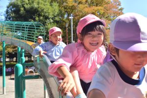 寒い日が続いていましたが、過ごしやすく気持ちの良い秋晴れが広がった今日は、年中組のお友達が綾瀬にある風車公園へ園外保育に行ってきました!あまり行ったことのないお友達も多く大喜びの様子でした。少し高さのある遊具にも果敢に挑戦するお友達が多く、たっぷり遊んでくることができました✨